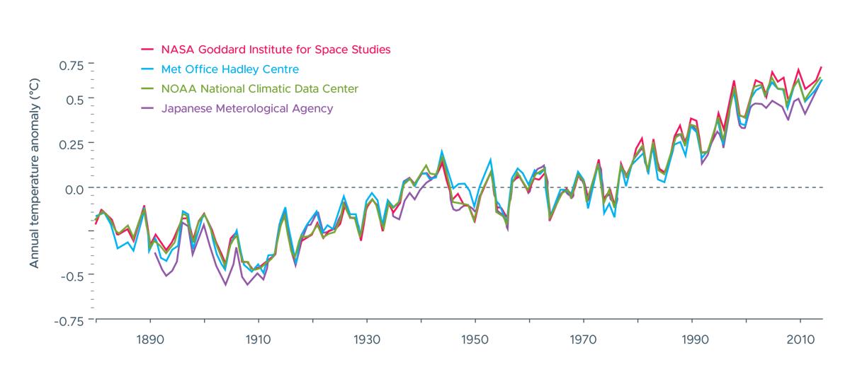 As indicated, the amount of CO2 in the atmosphere has risen from 280 to 413 ppm since the Industrial Revolution. Carbon dating shows that this increase is indeed connected to the burning of fossil fuels—coal and oil. During the same period, average global temperatures have been reported to have risen by 1 degree Celsius. This is according to ground-based measurements; satellite-based measurements suggest a less pronounced increase in temperature, especially in the tropical troposphere (the troposphere being the lowest part of the atmosphere, where most weather-related activity takes place). The International Panel of Climate Change has acknowledged this discrepancy in its fifth assessment report by attributing a 95 percent confidence rating to the assumption of the 1 degree Celsius increase.