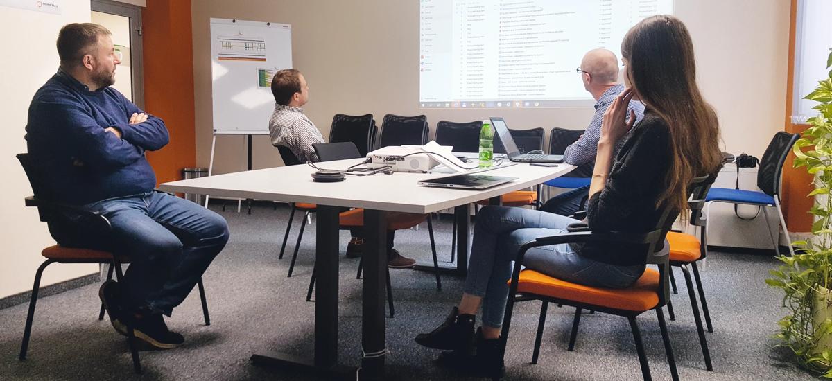 The word “agile” has many meanings at Primetals Technologies Poland. It not only encapsulates the broader working culture but also describes how software is developed. Dr. Niedbała invites me to join a Scrum meeting, where a group of programmers is discussing changes to their code. The software in question is a process-automation system for long-rolling plants called “Process Expert”—it is one of the location’s flagship solutions. New features need to be implemented, and there are also some customer requests. The objective of the meeting is to set the right priorities. About two-thirds of the team is working from home, and everyone in the room is practicing social distancing. Although the meeting is led by the “Scrum Master,” I can sense that there is no strict hierarchy and that everyone is on the same level, irrespective of their position in the company. It is part of the Scrum philosophy to encourage self-organization through an “agile management framework,” which means that it is less important how you achieve your targets, as long as you meet your deadlines and align with your team.