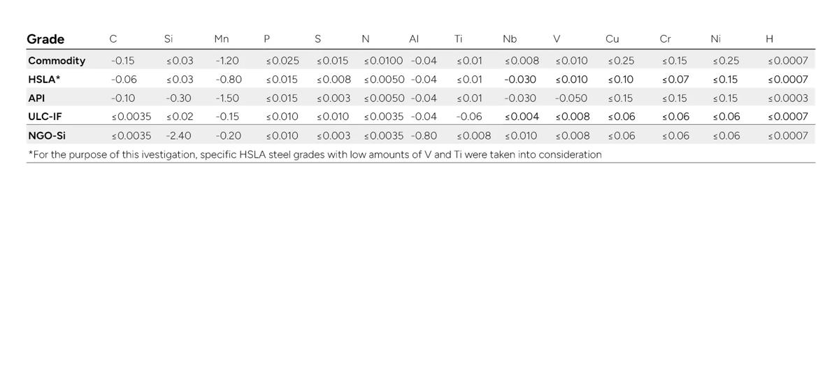 When designing metallurgical processes, the desired steel grade and target composition must be defined. The reason is that standards often allow a broad range of chemical compositions, whereas the requirements of customers, casters, and downstream facilities are often much narrower. When producing steel using an electric arc furnace, a ladle furnace, a vacuum tank degasser (VD), or an RH degassing unit, it is essential to achieve the appropriate chemical composition for specific grades, particularly those that without it have unique requirements, such as API grades, ultra-low carbon interstitial-free (ULC-IF), and non-grain-oriented silicon steel (NGO-SI).