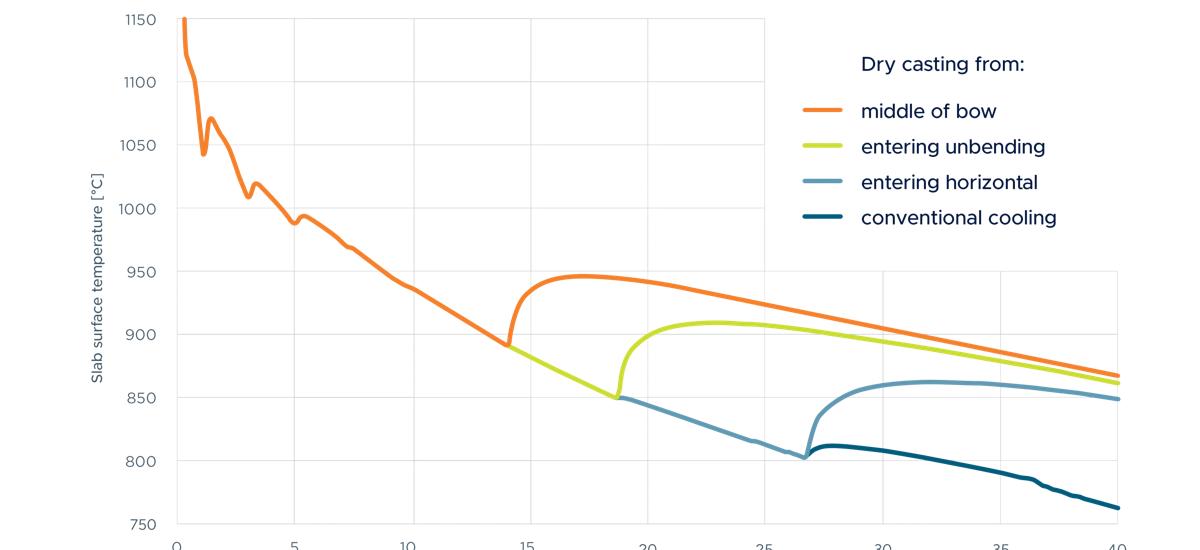 The application of hard reduction for ultra-thick slab casting is essential to achieving the highest-quality heavy plate. In this case, continuous casting requires segments that provide single roll motion while applying a high reduction force. Advanced automation solutions are needed to predict steel properties and the solidification point, as well as to adjust the casting gap. A secondary spray cooling system is designed to ensure uniform solidification. The application of dry casting also helps reduce reduction forces.